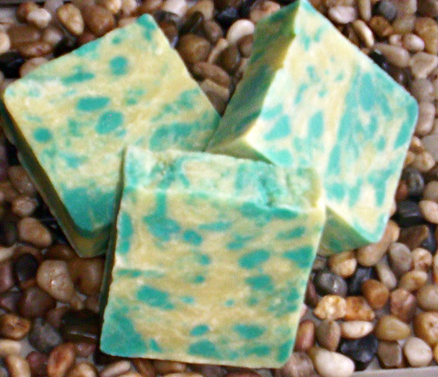 Ingredients - Raw Shea and Cocoa Butter, Olive Oil, Coconut Oil, Soybean Oil, Distilled Water, Sodium Hydroxide, Lemon Chiffon, Sky Blue and white mica Oxides.